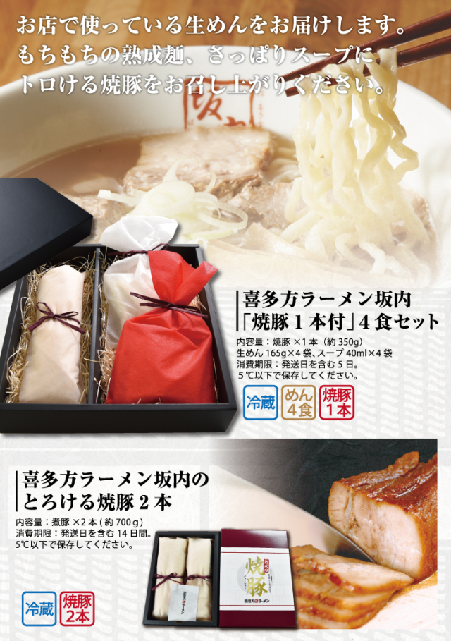 「喜多方ラーメン坂内」とろける焼豚1本付き、ラーメン4食セット(冷蔵)